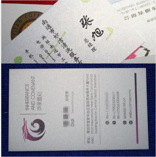 細節備注:如果您的名片墨地比較大建議選擇覆膜工藝