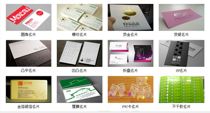 印刷工藝:名片圓角、凹凸名片、折疊名片、燙金名片、燙銀名片、凸字名片、異型名片